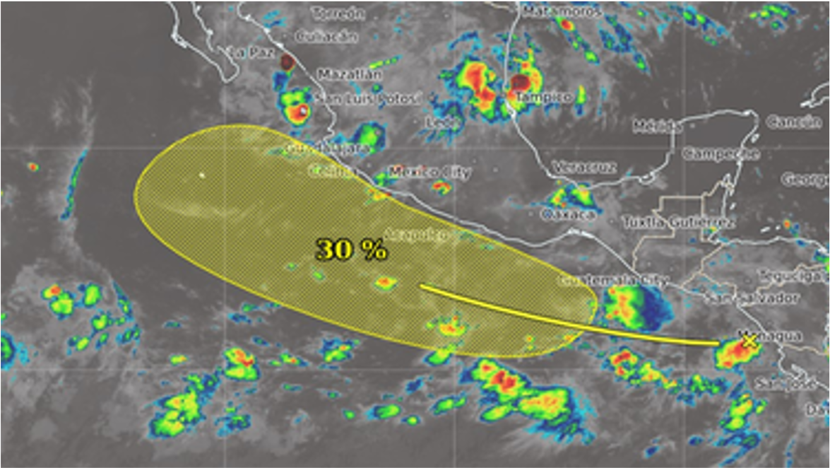 ¡Atención, Pacífico! Una zona de baja presión podría convertirse en el ciclón tropical Mario esta misma semana. Jalisco, Colima, Michoacán y Guerrero en alerta por lluvias intensas y viento.